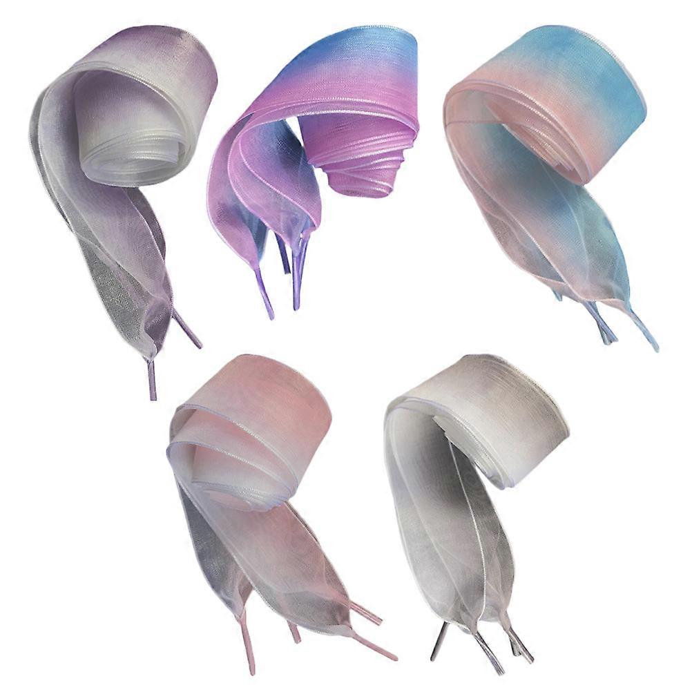 Flat Shape Gradient Color Matching Yarn Shoelace Semi-Transparent Widened Shoe Tie Skate 5Pcs