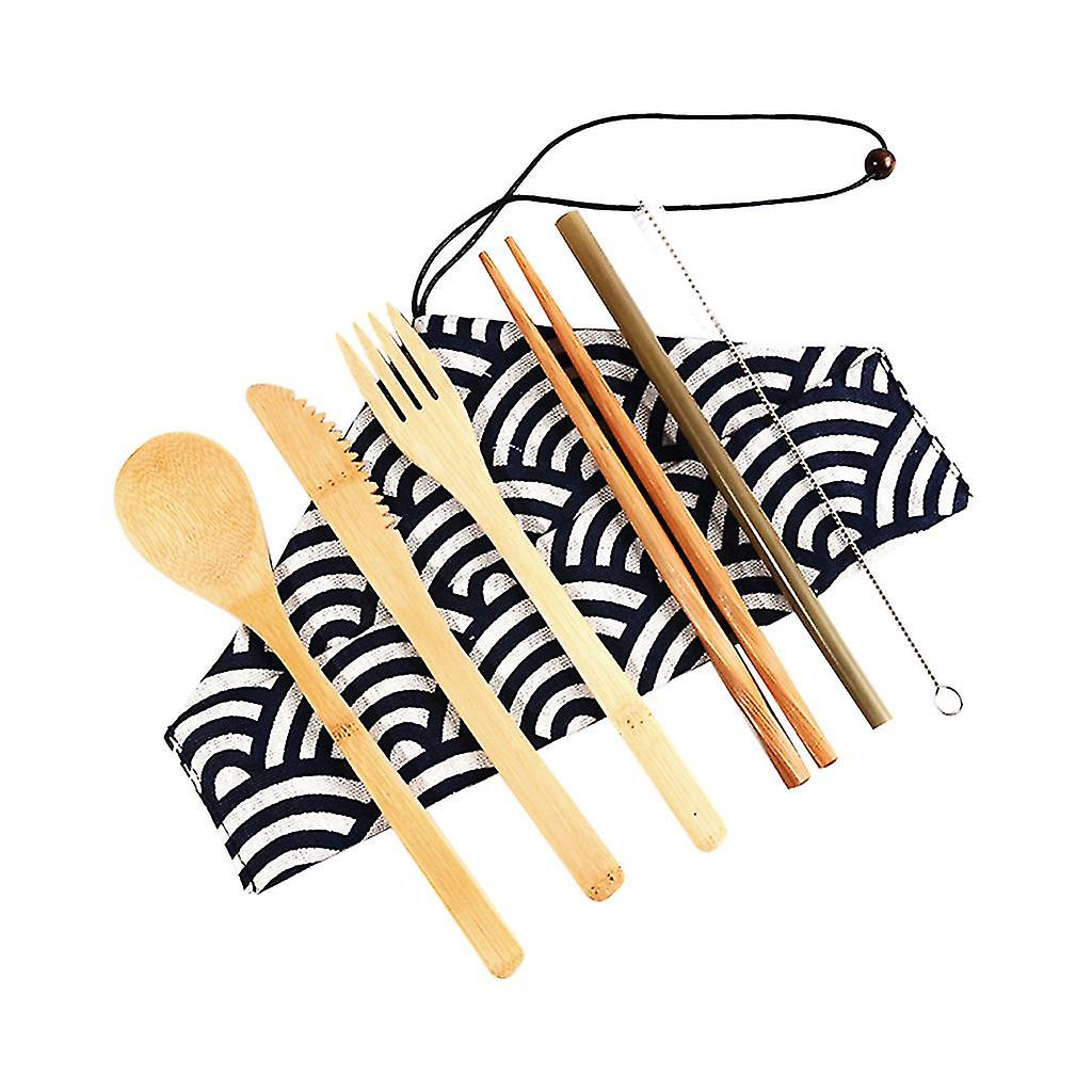 Flatware Sets Portable Bamboo Cutlery Travel Eco-friendly Fork Spoon Set Include Reusable Bamb