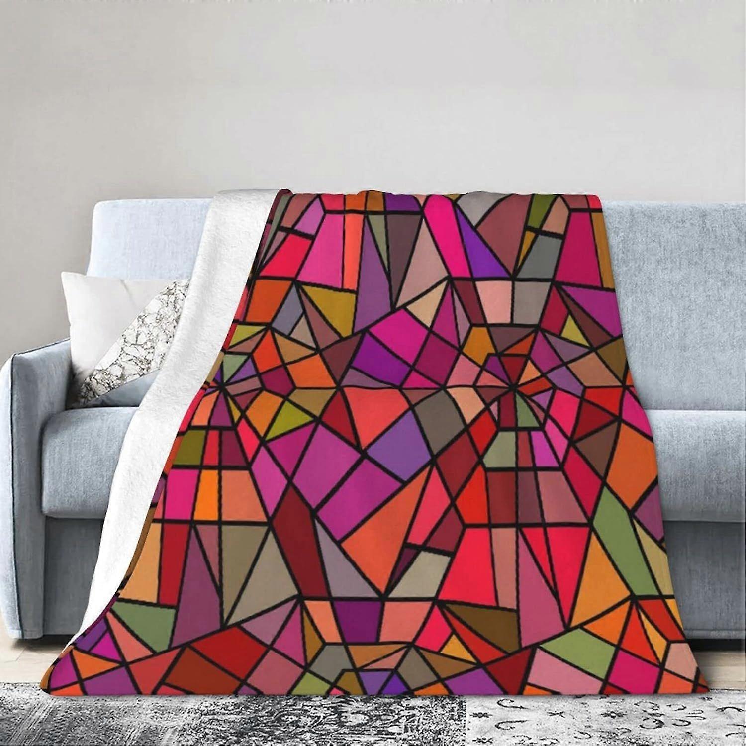 Fleece Blanket Abstract Mosaic Style Stained Glass Fractal Colorful Geometric Triangle Forms Image Throw Blanket for Cou-asdfg334