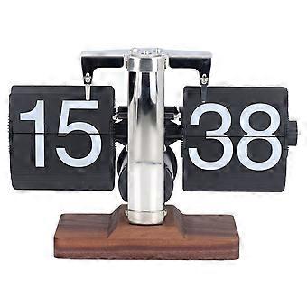 Flip Desk Clock Auto Retro Wood Base Easy to Read 24 Hours Mechanical Flip Clock for Living Room Study Room Black