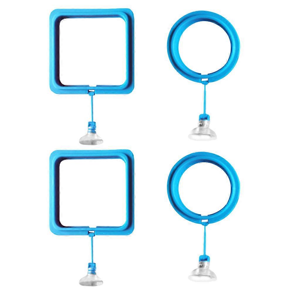 Floating Fish Feeder 4Pcs For Aquarium Use Blue Durable Plastic Prevent Feed From Floating Around