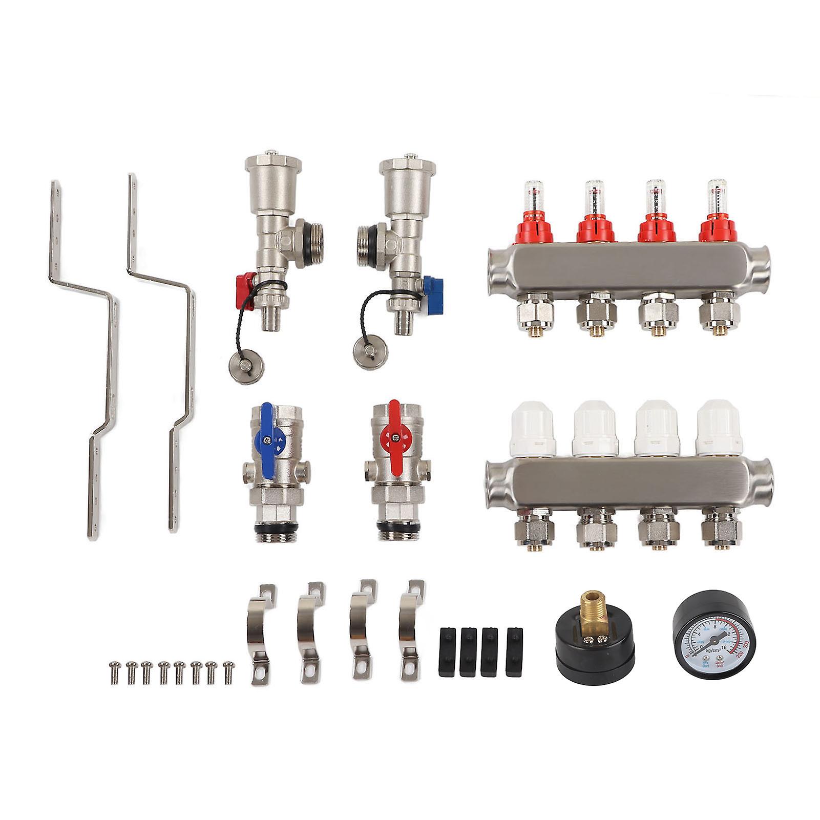 Floor Heating Manifold 4 Loop G1 304 Stainless Steel Heat Manifold Set with Visible Adjustable Flowmeter