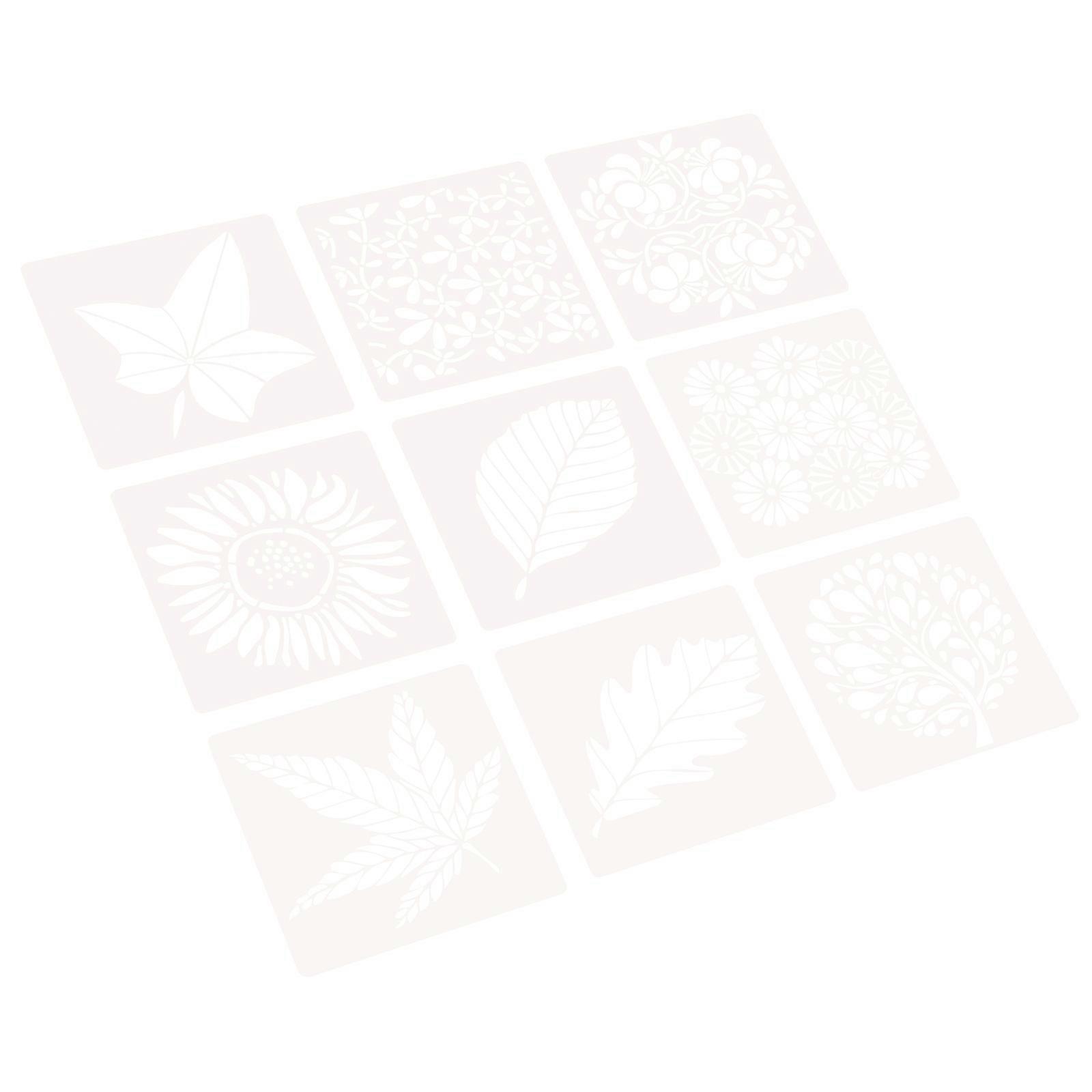 Floral Painting Templates Leaf Flower Painting Stencils for Bookmarks Composed of Waterproof White Pet Material with Diy Craft Projects Function 9Pcs