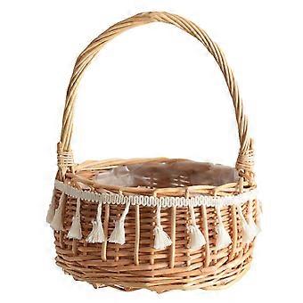 Flower Basket Decorative Multifunctional Reusable Tassels Design Storage Organizer for Daily Use