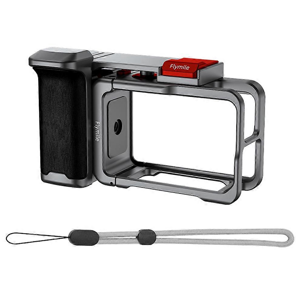 FLYMILE Action Camera Handle for DJI Osmo Action 5 Pro / 4 / 3 Rabbit Cage Shutter Button with Hand Rope Set