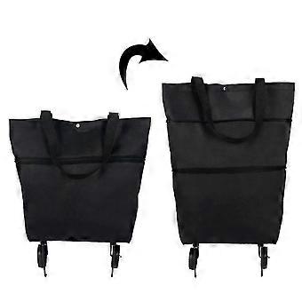 Foldable 2-in-1 Shopping Cart with Wheels & Removable Zipper Bag, Portable Grocery Basket in Black
