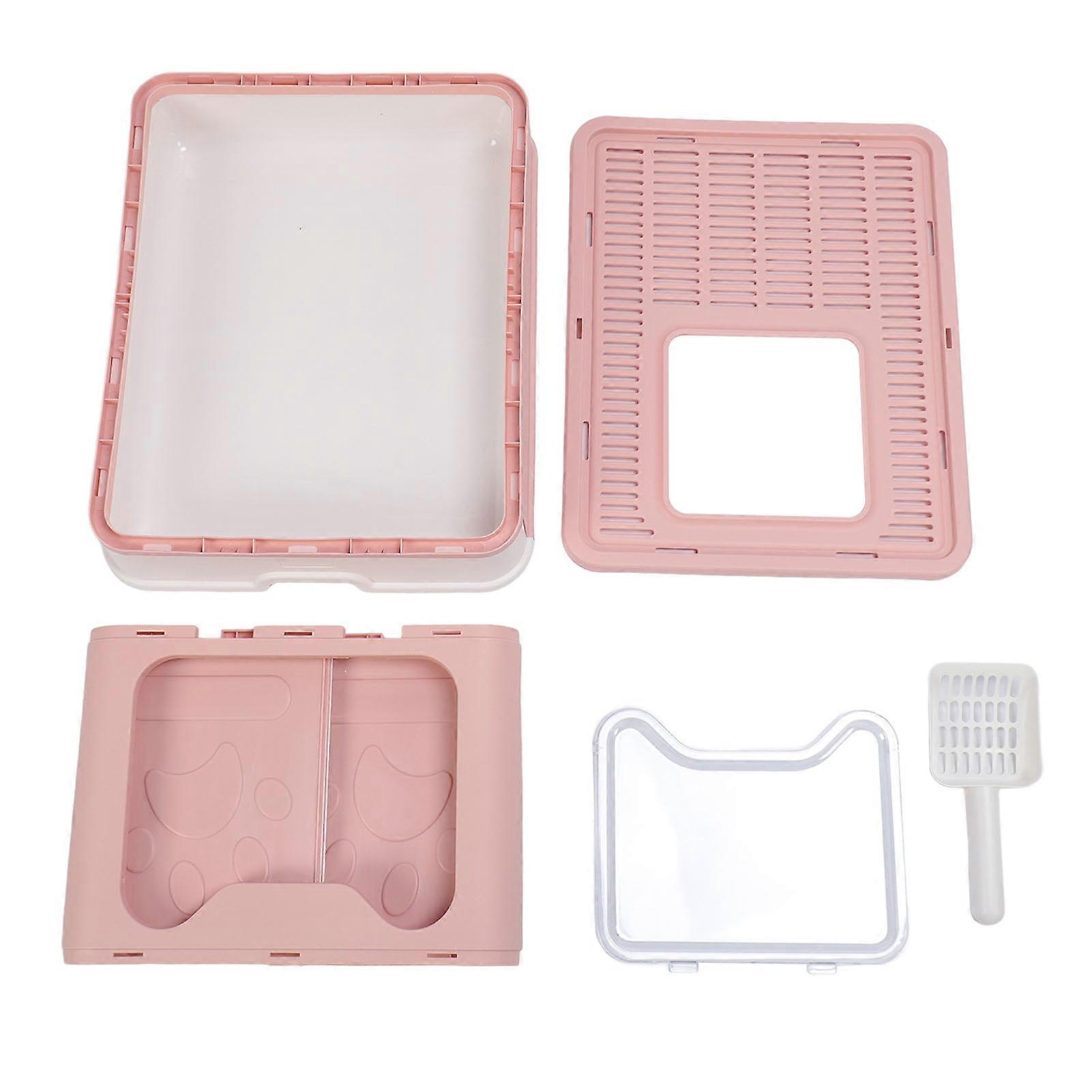 Foldable Cat Litter Box Multipurpose Semi Enclosed Odor Control Easy Clean Large Space Kitty Litter Box with Lid for Indoor Pink