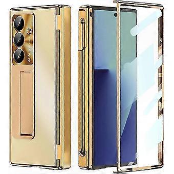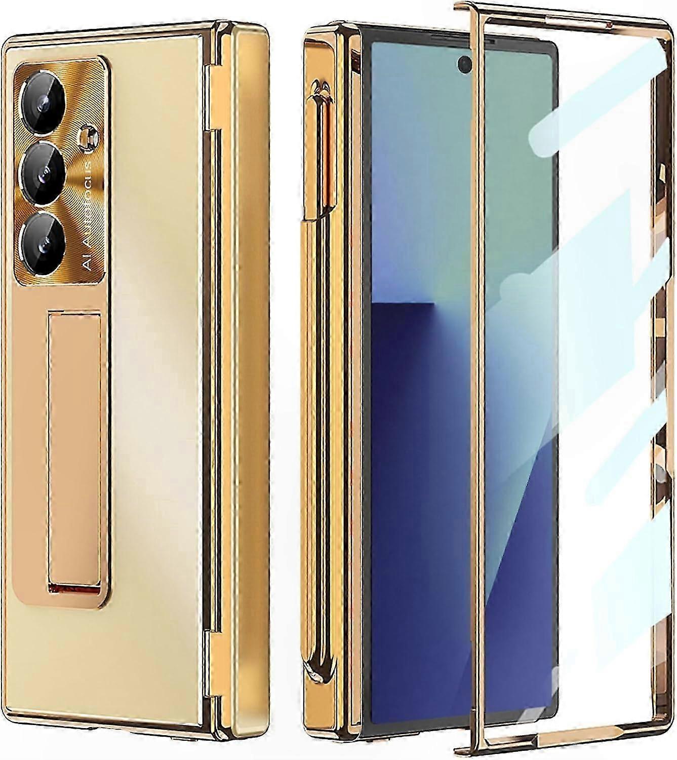 Foldable Phone Case with S Pen Holder & Stylus, Screen Protector and Kickstand for Galaxy Z Fold 7, Rose Gold Finish
