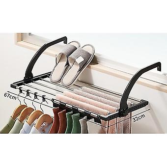 Folding Balcony Shoe Rack Stainless Steel Foldable Stable Rustproof Portable Clothes Drying Rack for Windowsill Black Round 67 X 32cm / 26.4 X 12.6in