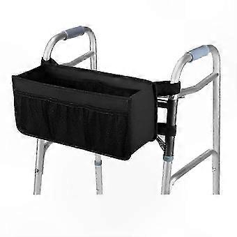 Folding Walker Storage Bag with Cup Holder and Basket for Mobility Aids Accessory Organization Solution