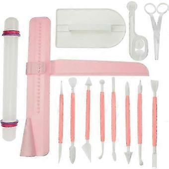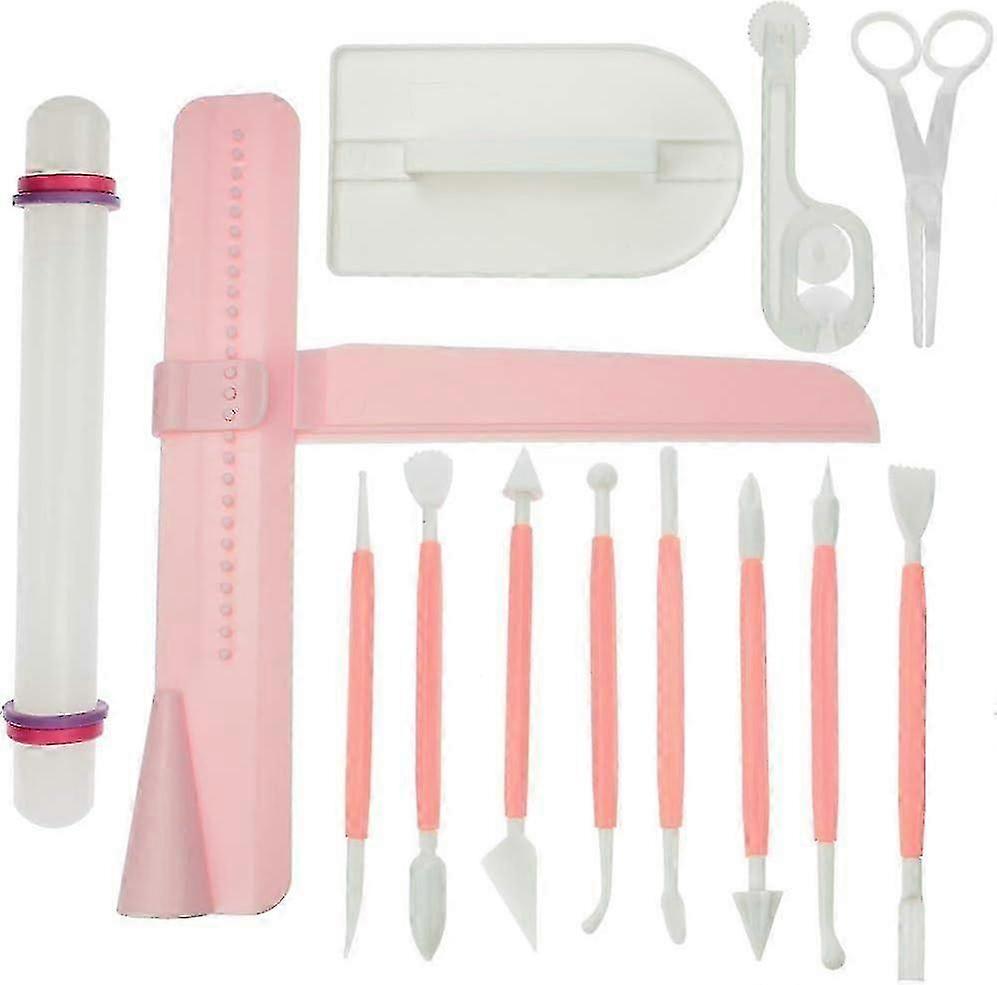 Fondant Cake Decorating Tool Set - Adjustable Icing Smoother, Rolling Pin, Trimmer, Cutter, Embosser & Flower Scissors for Bakers