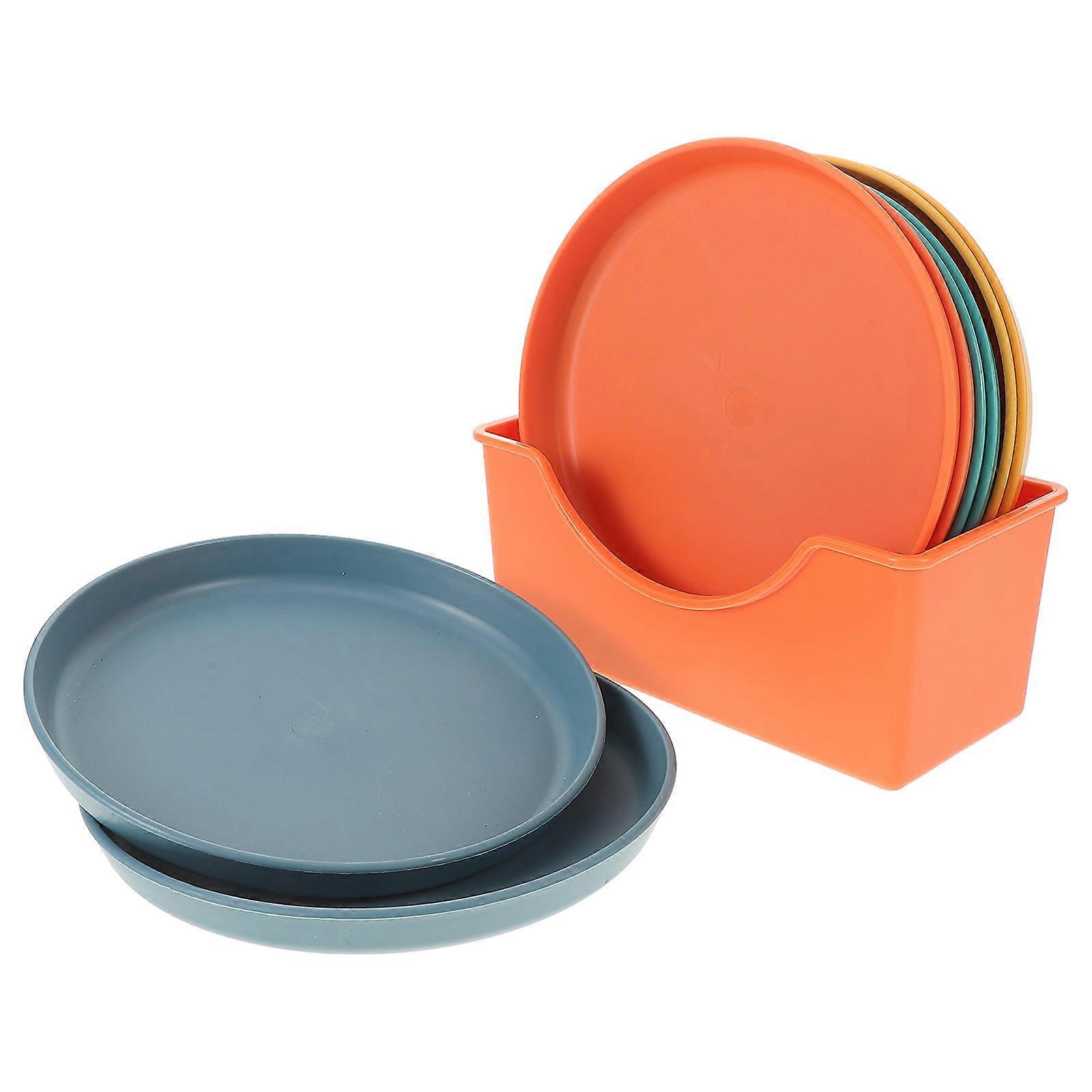 This is a set of storage plates, which are made of materials, and can be used safely. These plates can be used to hold bone residue on table, fruits, snack and other items you need. The unique shapes make the foods plates more creative and distinctive. Features - Color: Green, Blue, Orange, Yellow - Material: PP - Size: About 14.50X14.50X1.50cm/5.70X5.70X0.59in - Note: storage rack (orange) - Made of materials, it can be used for a long time. - These plates can be used to hold bone residue on table, fruits, snack and other items you need. - Wide range of uses, can be used for fruits, dessert, breads, etc. - Multiple colors are available to meet your different needs. - Suitable for home, restaurant, hotel, etc. Package list: 1 x storage rack 8 x round small dishes