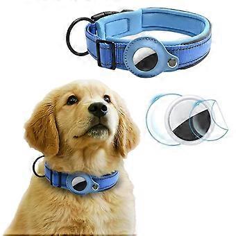 For AirTag PU Leather Pet Dog Collar Bluetooth Tracker Holder Protective Case, Size: M Blue