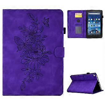 For Amazon Fire HD 8 (2016)/(2017)/(2018) Protective Case Butterfly Flower Pattern Imprinted Leather