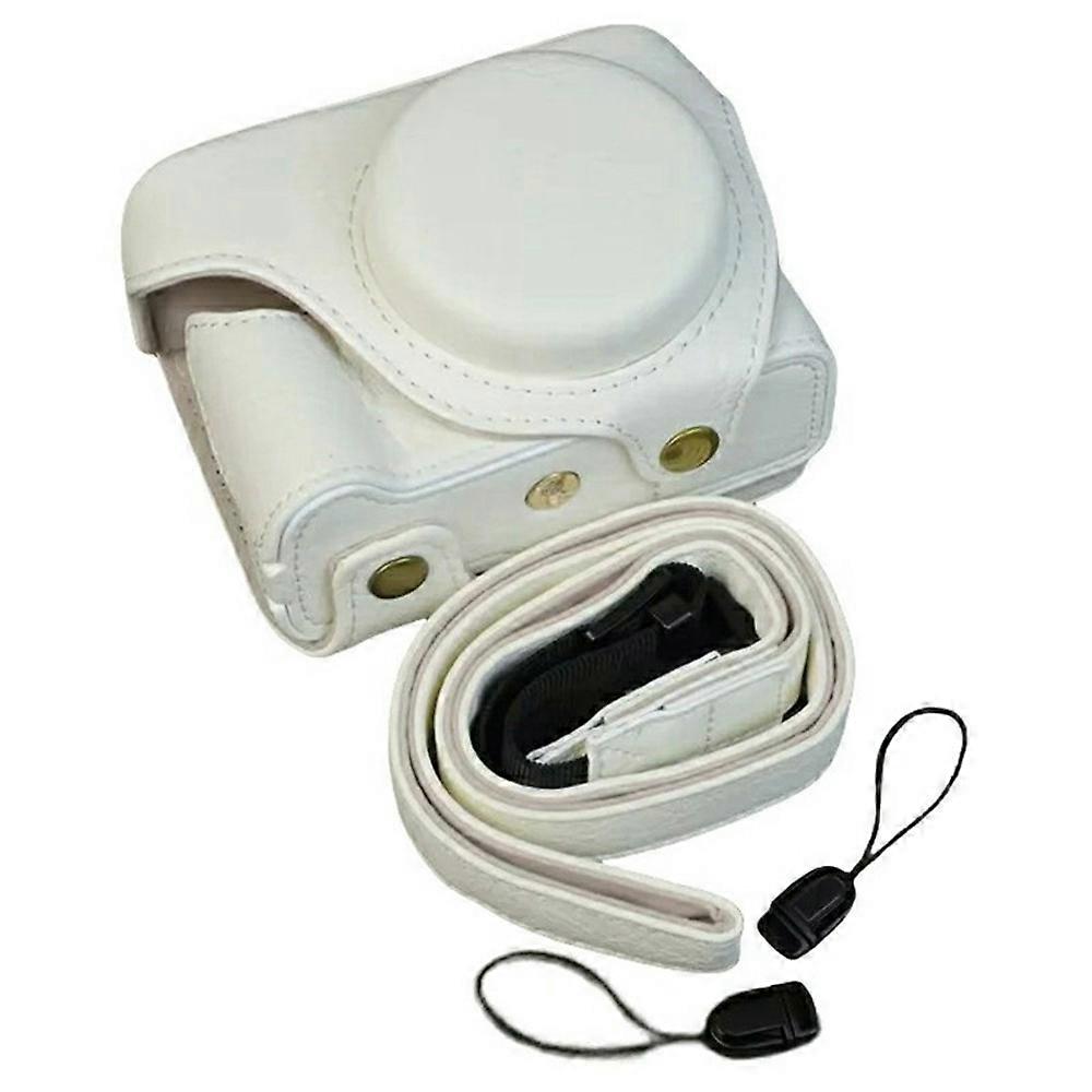 For Canon PowerShot V1 Camera Case with Battery Opening Portable Leather Camera Protective Cover White