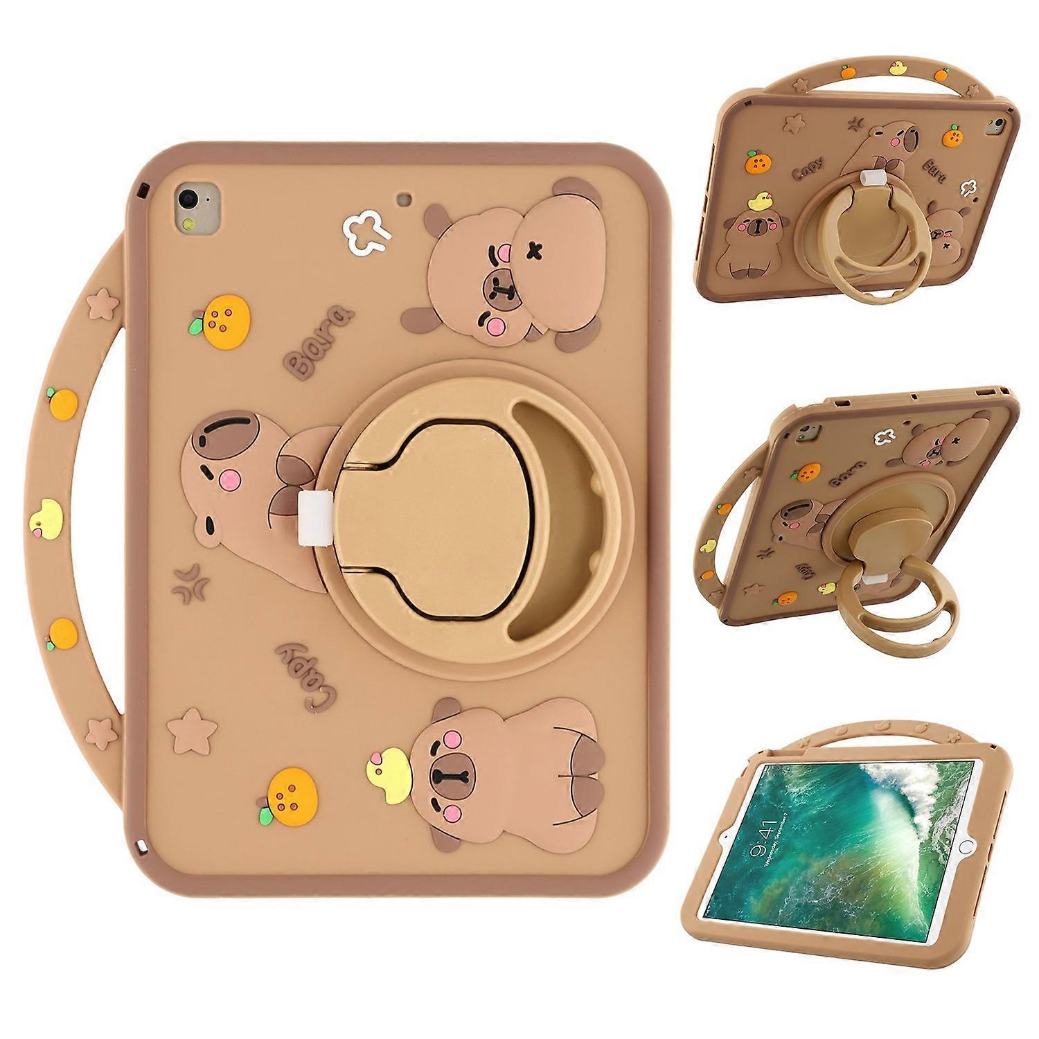 For iPad 9.7-inch (2018)/(2017) Silicone Case with Handle 360 Degree Rotating Kickstand Protective Cover Capybara Pattern •【360° Rotating Kickstand】 The built-in plastic kickstand rotates 360 degrees,allowing you to prop up your phone at any angle for hands-free viewing,whether you're watching videos or video calling. •【Comfortable Handle Design】 The integrated handle provides a secure grip,making it easy to carry your phone and reducing the risk of accidental drops. •【Cute Pattern】 Featuring adorable and stylish Capybara patterns,this case adds a touch of personality and charm to your device,perfect for those who love unique designs. •【Durable Protection】 Made from high-quality silicone,the case offers excellent shock absorption and protects your phone from scratches,bumps,and daily wear. •【Perfect Fit】 Precision-cut openings ensure easy access to all ports,buttons,and features,while maintaining a slim and lightweight profile. Compatible with: •iPad 9.7-inch (2018) Package included: •1 x Silicone Case •Other items not include