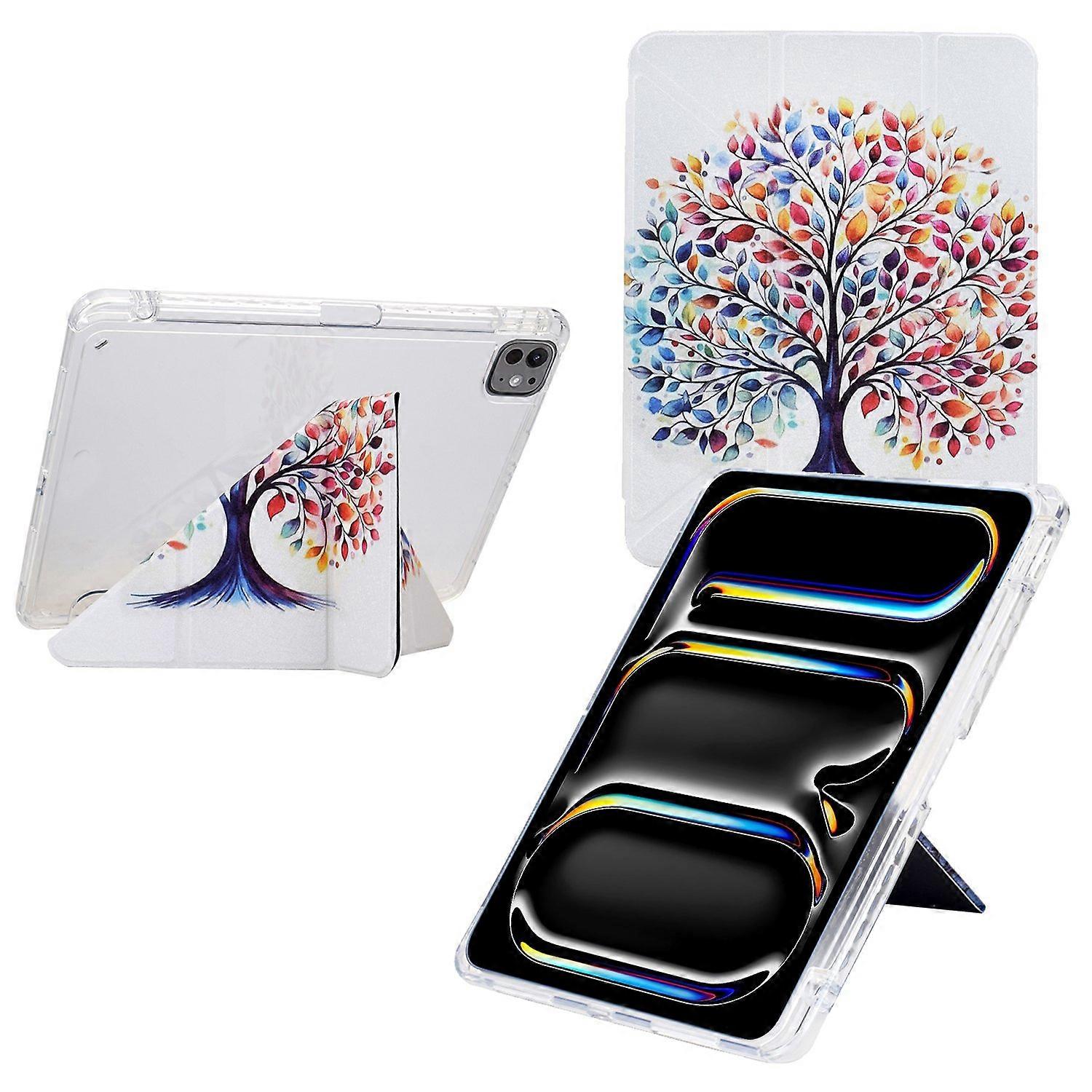 For iPad Pro 11 (2024) Case Y-Fold Stand Pattern Print Leather Clear Acrylic Tablet Cover with Penci