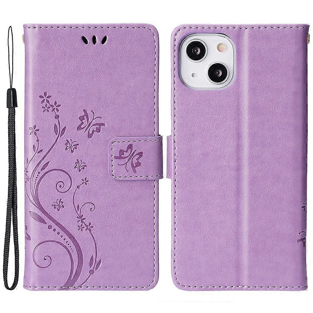 For iPhone 15 Plus PU Leather Wallet Cover Cell Phone Case Imprinted Butterflies Shell Stand with St