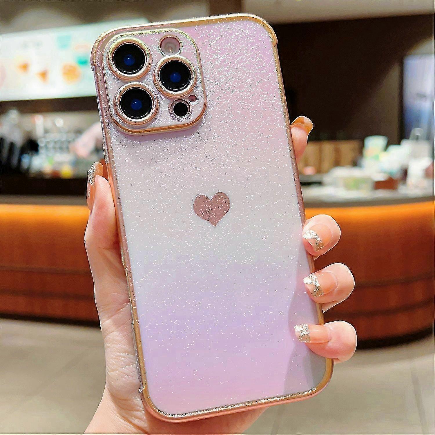 For iPhone 16 Pro Max Case Dazzling Design Electroplating Heart Pattern TPU Phone Cover