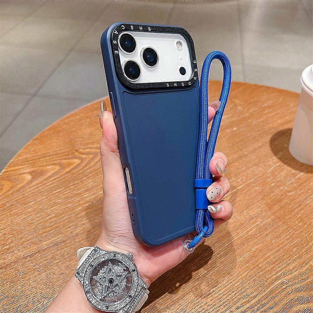 For iPhone 17 Pro Max Case Black Lens Frame Shockproof TPU PC Phone Back Cover with Wrist Strap