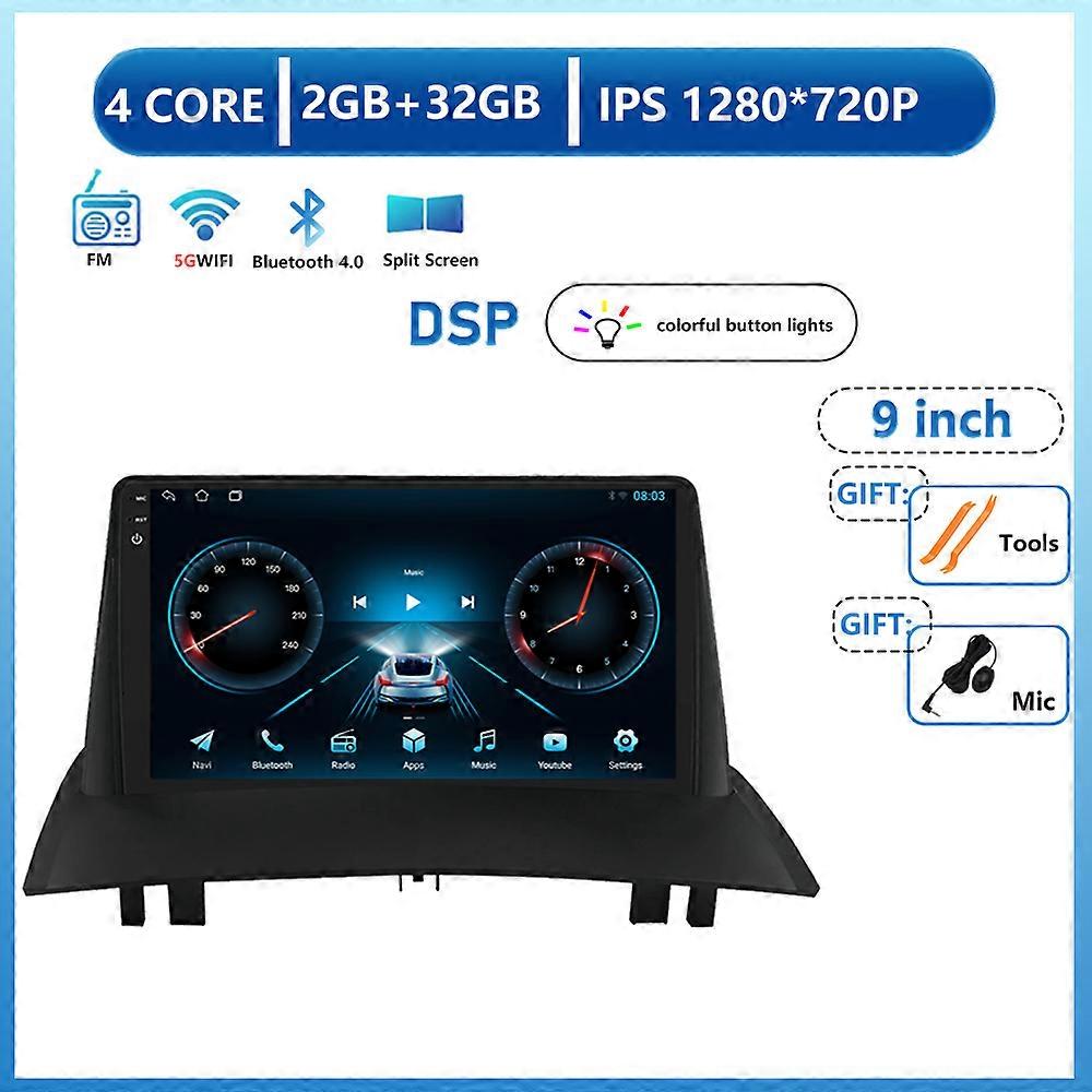 For Renault Megane 2 2002-2009 Android 13 Carplay Auto Car Radio Multimedia Video Player Navigation GPS WIFI DSP 2 Din 2Din DVD