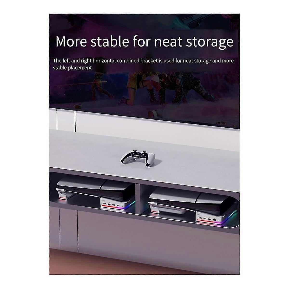 For Slim Console Horizontal Storage Stand Portable With 4 Usb Ports Rgb Colorful Lights Flat Stand,white
