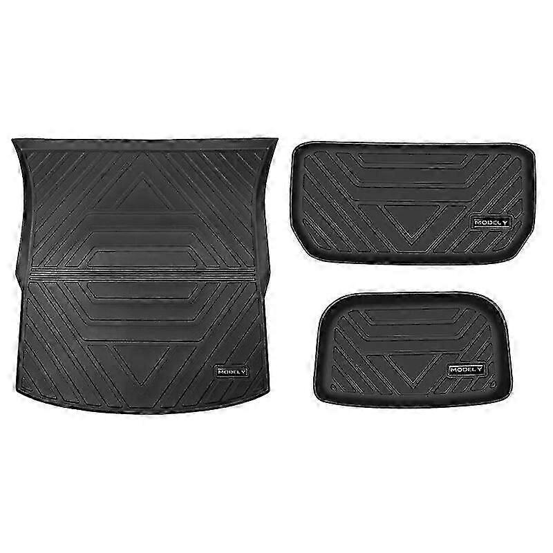 For Tesla Model Y Mats Plain TPE Trunk Frunk Liners Cargo Lower Compartment Boot Carpet & Seat Back Protector Dirtyproof Cover