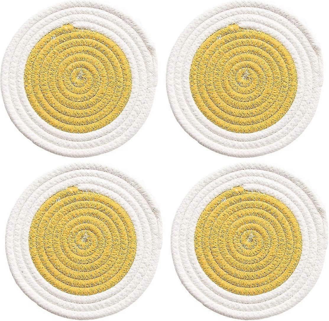 For Woven Placemat Cotton Round - Washable Table Mat, Heat Insulated Pot Holders, Set of 4, Diameter 7 Inch, Durable Tableware