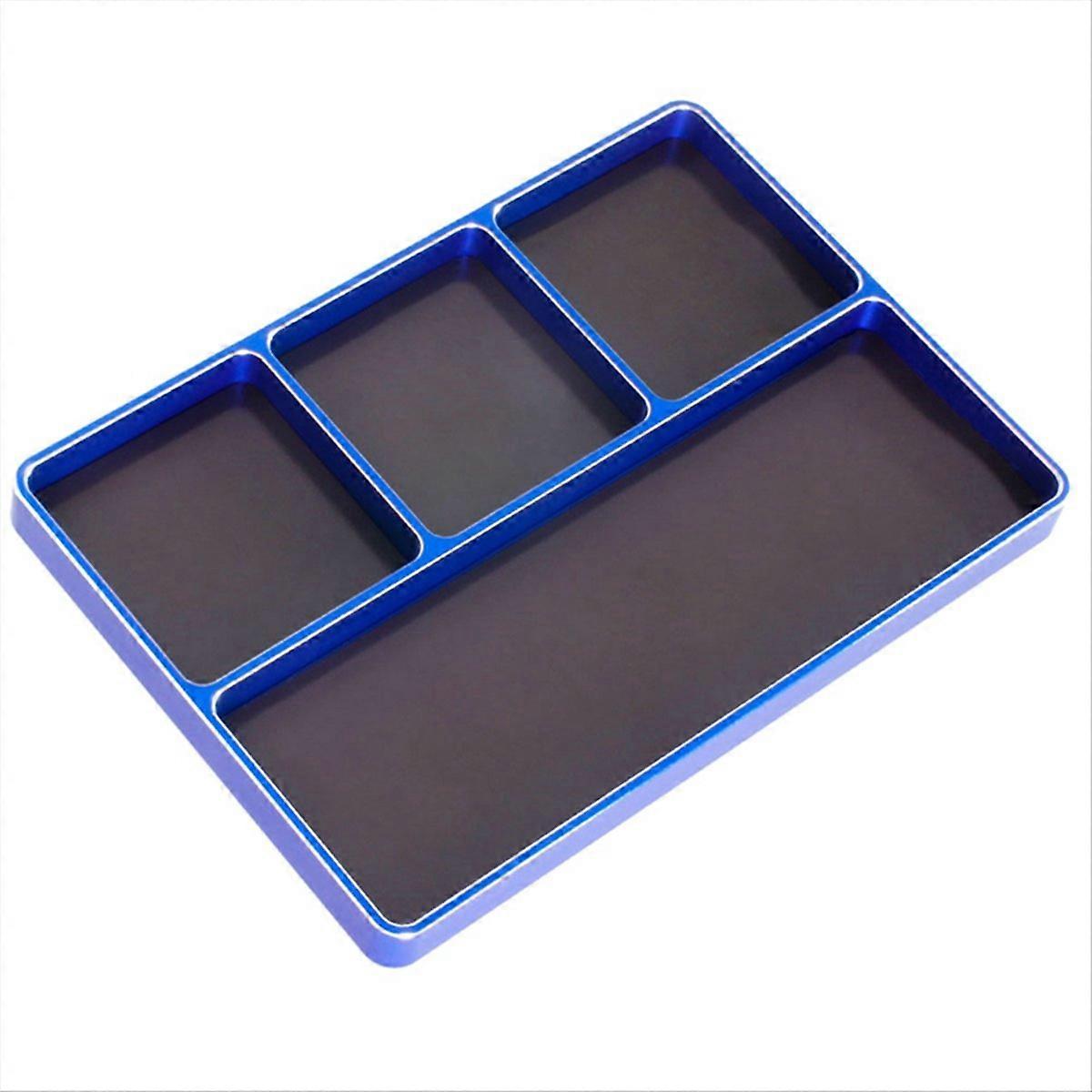 Four-Grid Simple Screw Disk Storage Box Metal Nut Screw Tray,Blue