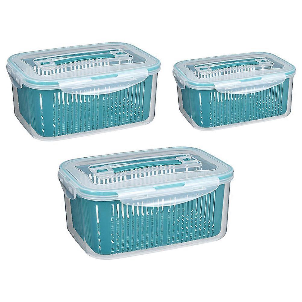 Freshness Preservation Fruit Storage Containers with Removable Drain Baskets 3Pcs