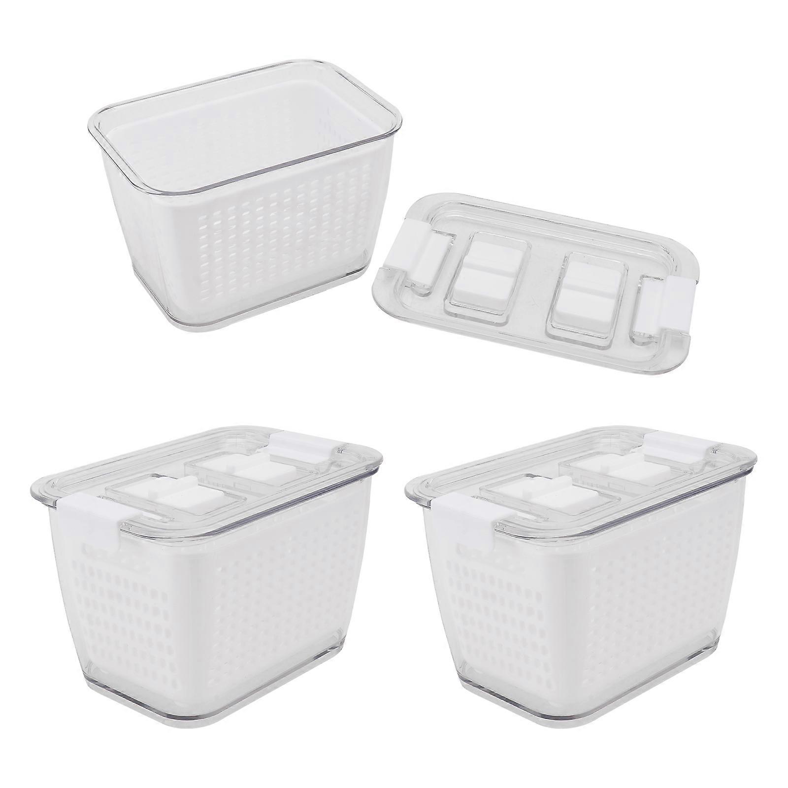 Fruit Vegetable Storage Containers 3Pcs Designed For Refrigerator Organization White Color With Drainage Feature