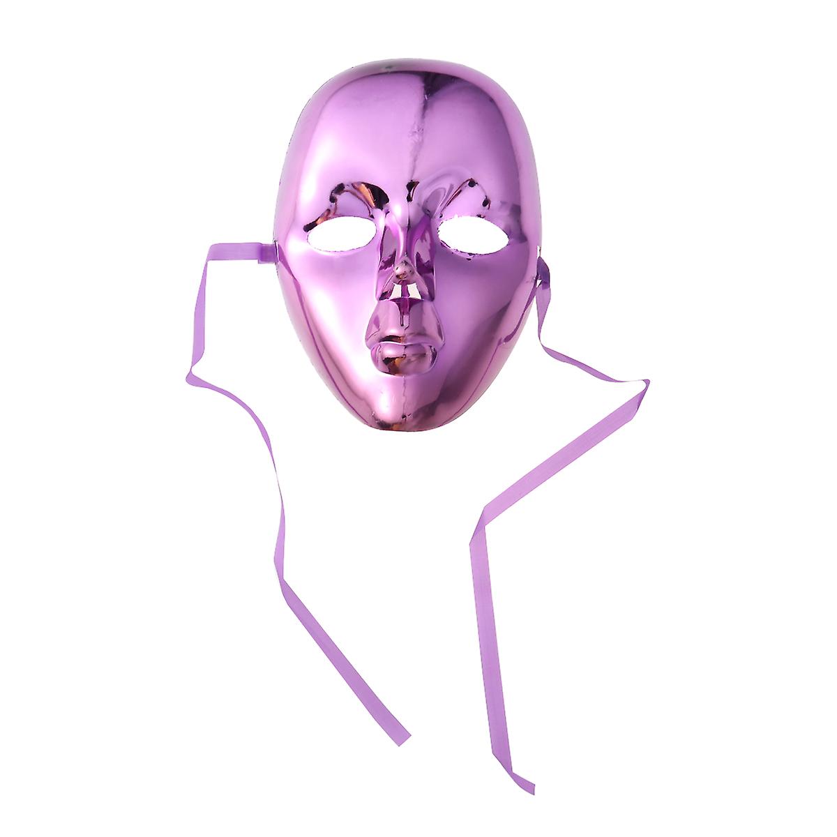 Full Face Masquerade Masks Plated Carnival Face Mask Performance Props with Elastic Head Band(Purple)