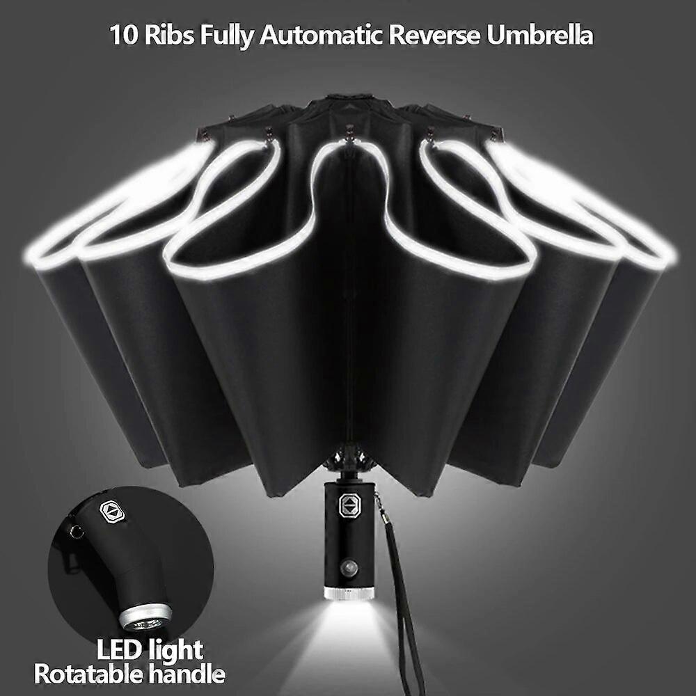 Fully Automatic Reverse Folding Umbrella With LED Flashlight 10Ribs Windproof Reflective Stripe UV Umbrellas For Sun Or Rain Day