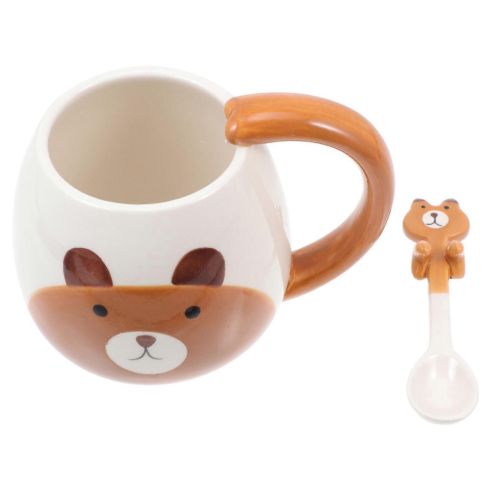 Functional Water Cup With Spoon Suitable For Office Use Made From Ceramic In Chocolate Color 2 Sets