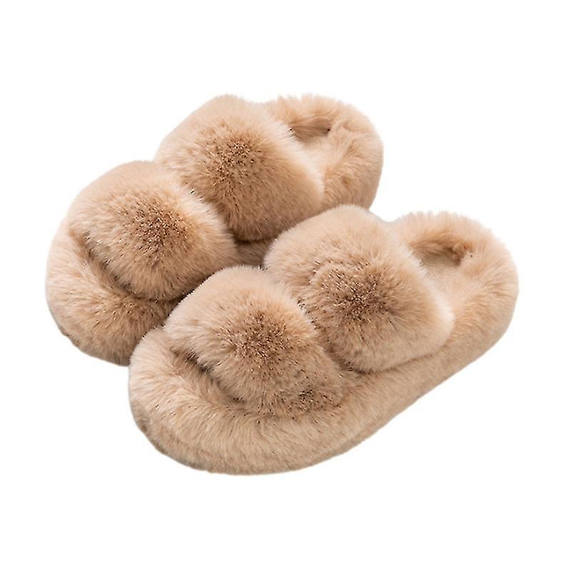 Fuzzy Slippers Women Furry Cross Band House Slippers Open Toe Slipper Slides Rabbit Fur With Memory Foam Insole