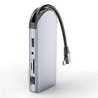 FX-1939C Docking Station Type-C to USB-C + 4xUSB2.0 + SD / TF Card Slot + 3.5mm + 4K HD + VGA + RJ45 USB Hub Adapter