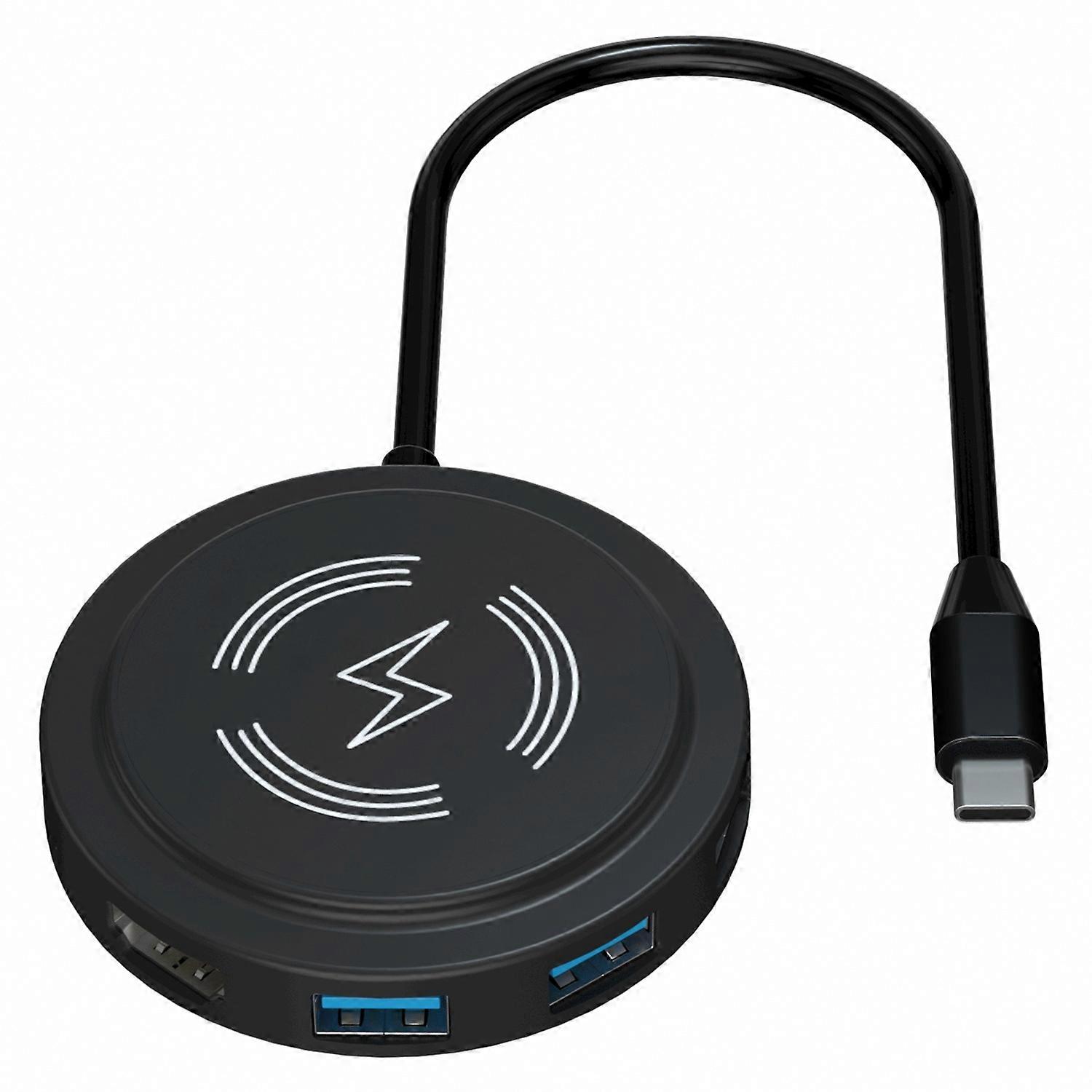 FX-2318A 6-in-1 Type-C Hub 15W Wireless Charger Round Docking Station with 4K HD Output