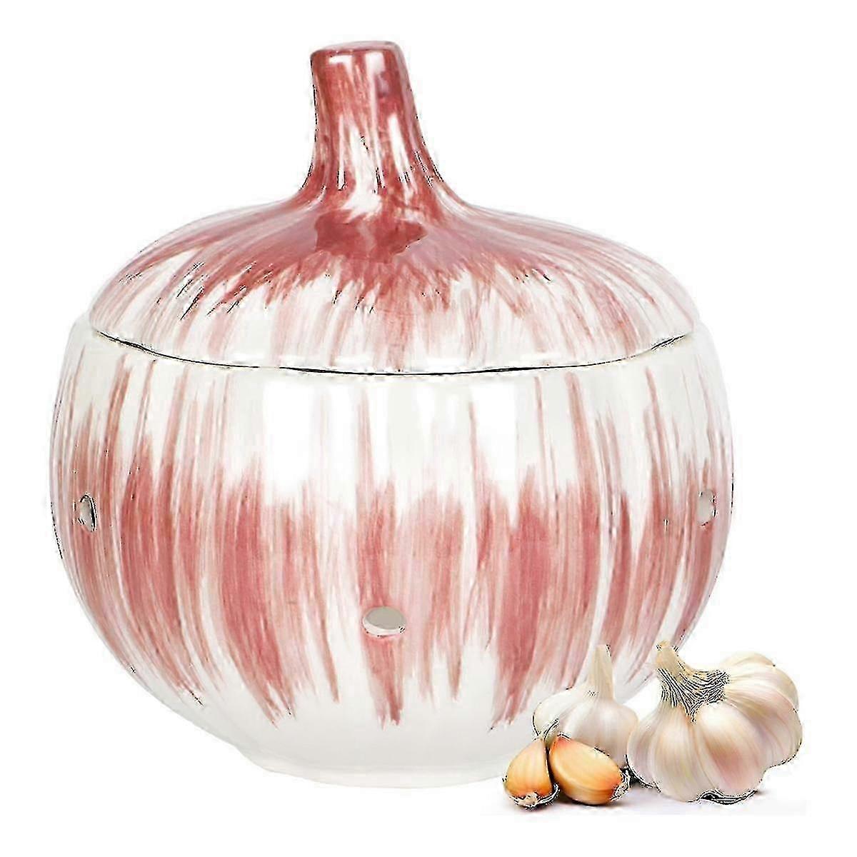 Garlic Keeper, Ventilated Ceramic Storage Container with Lid for Counter