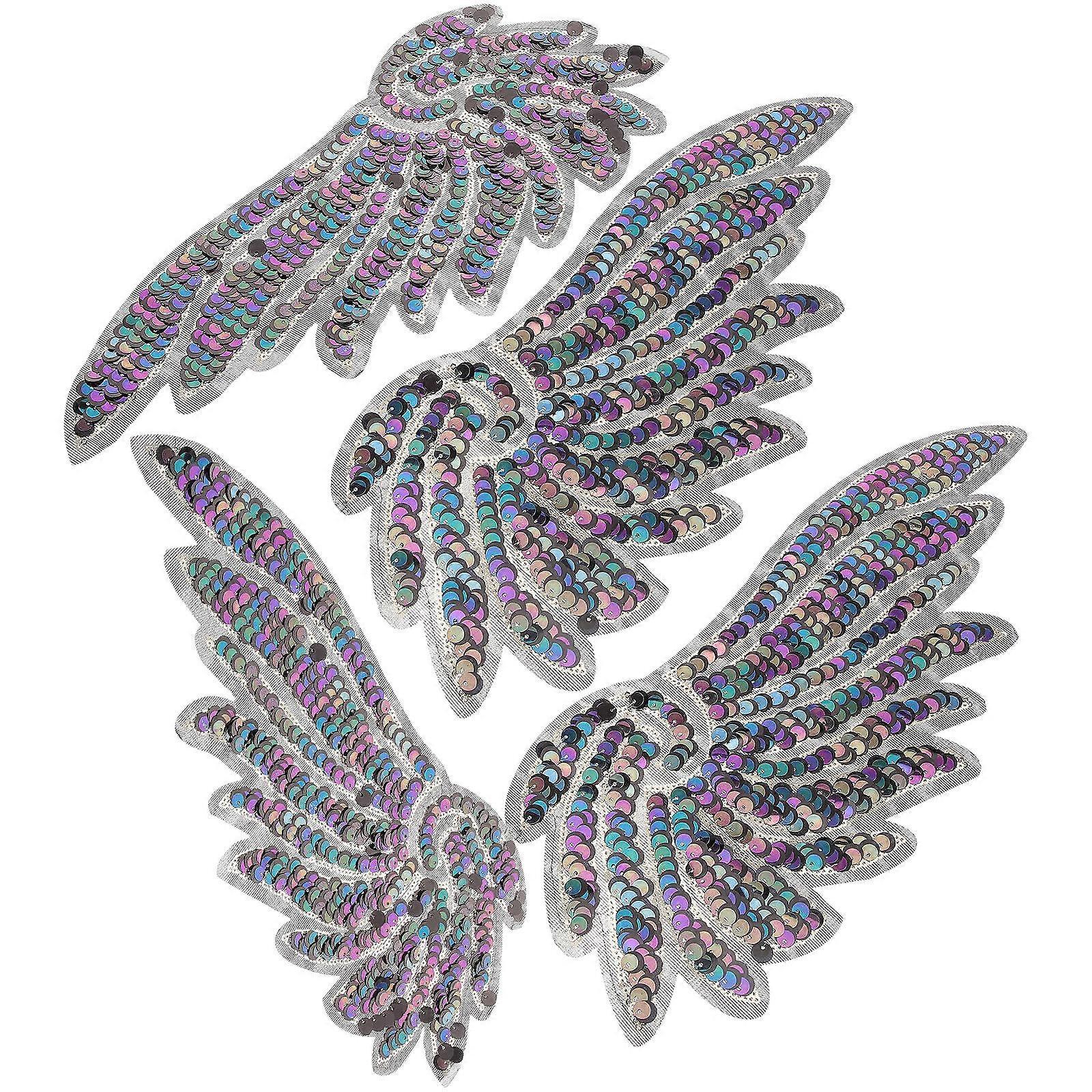 Garment Applique Angel Wing Design Patch for Backpacks Multi Polyester and Sequin Decorative 2pairs