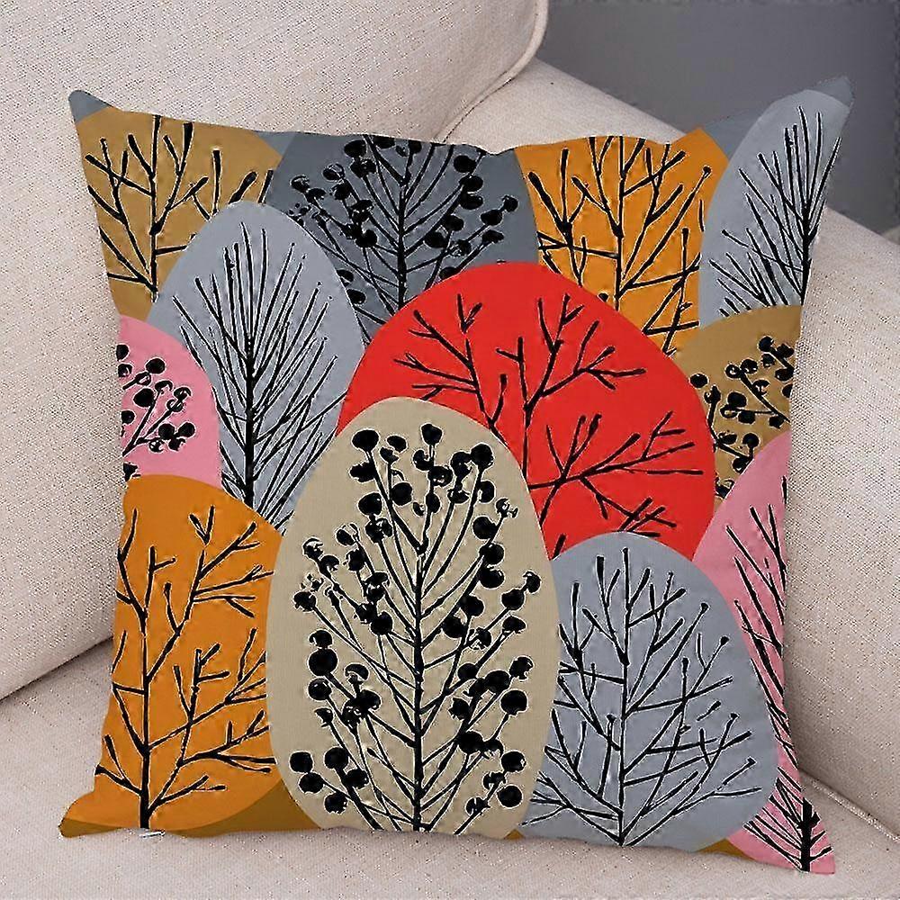 Geometric Abstract Art Cushion Cover Featuring Decorative Plants and Trees for Sofa, Home, and Car Pillowcase Design 2156