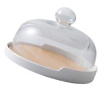 Glass Dessert Dome with Wood Tray Simple Style for Dining and Food Serving 23x23cm Rotating 1 Set