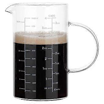 Glass Measuring Cup, Insulated Handle, V-Shaped Spout, High Borosilicate Glass Measuring Cup 1000ML,