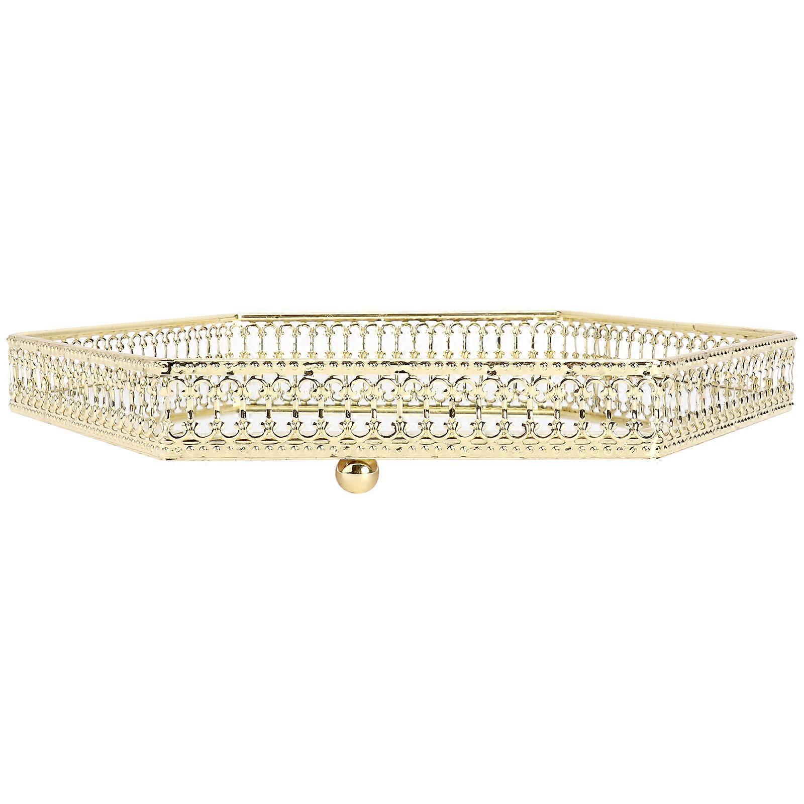 Glass Mirror Tray For Cosmetics Storage In Assorted Color Hexagonal Shape Ideal For Daily Use 1Set