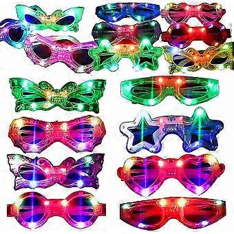 Glow Party Glasses Bulk - 24 Pack of Light-Up LED Shades with Replaceable Batteries, Assorted Shapes for Kids & Adults