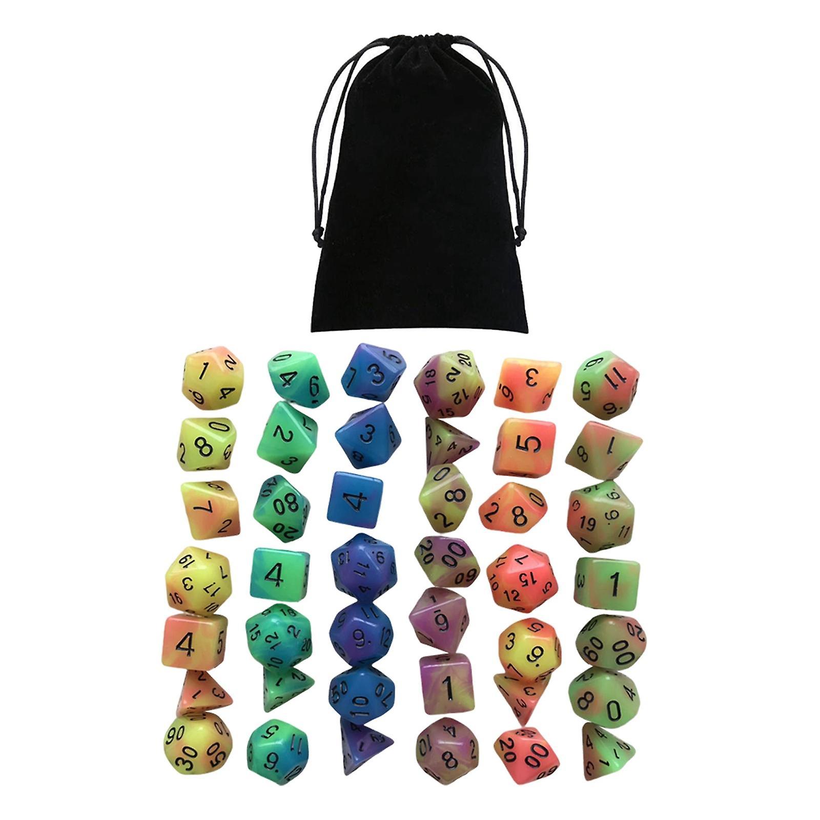 Glowing Polyhedral Dices Set with Pouch for MTG Role Math Teaching