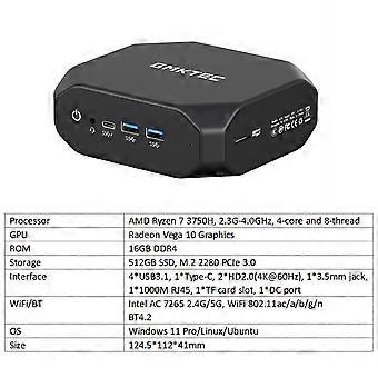 GMK NucBox KB4 Mini PC AMD Ryzen 7 3750H Processor Radeon Vega 10 Graphics GPU 16GB+512GB Memory Multiple Ports EU Plug