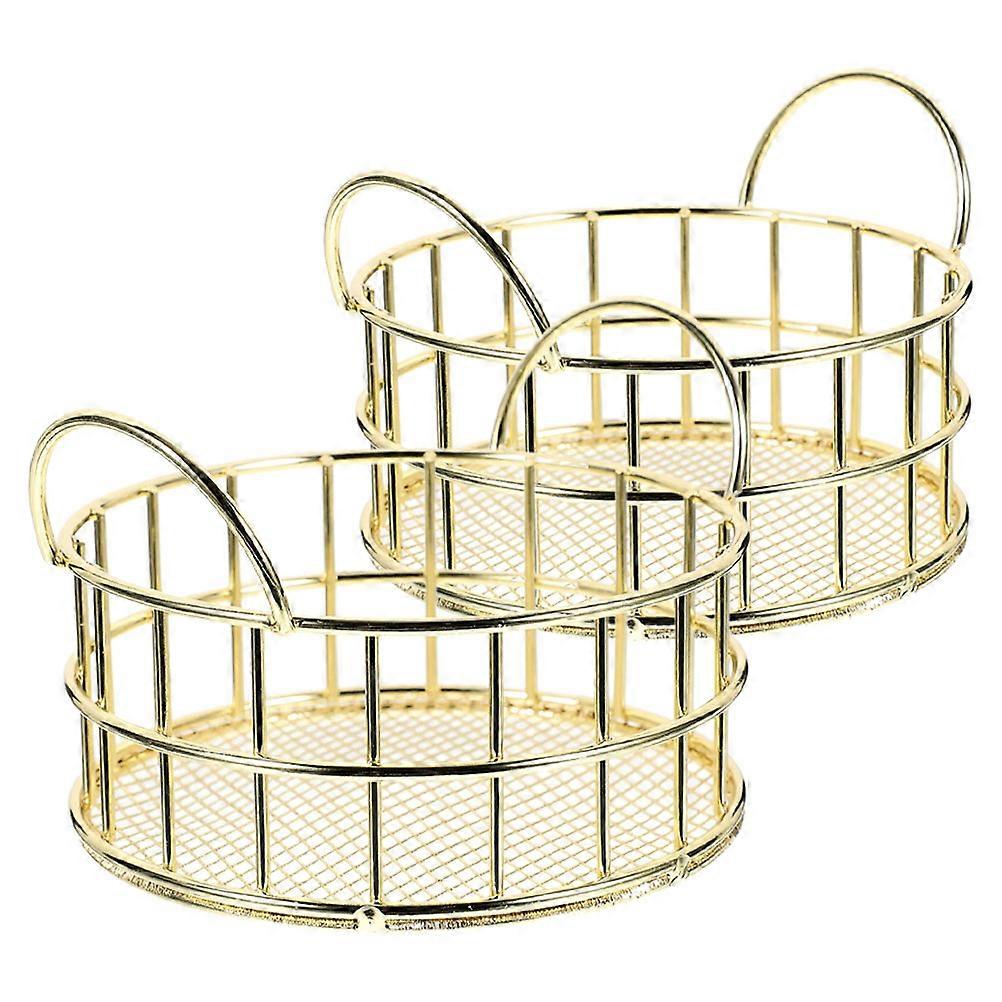 Golden Color 2Pcs Metal Basket For Organizing Sundries At Home And Office Cat Ear Shape Desk Storage Solution
