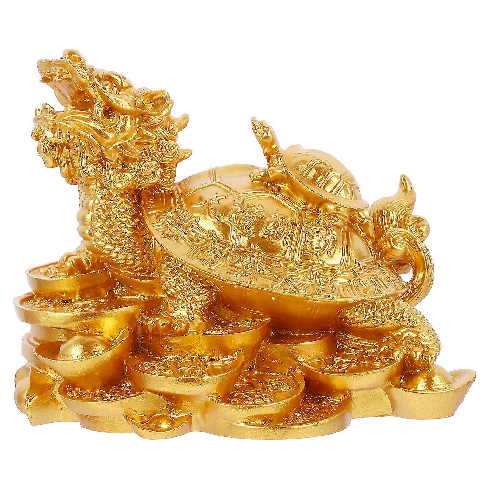 Golden Dragons Tortoise Statue for Decor Made of Synthetic Resin Lifelike Design 1pc
