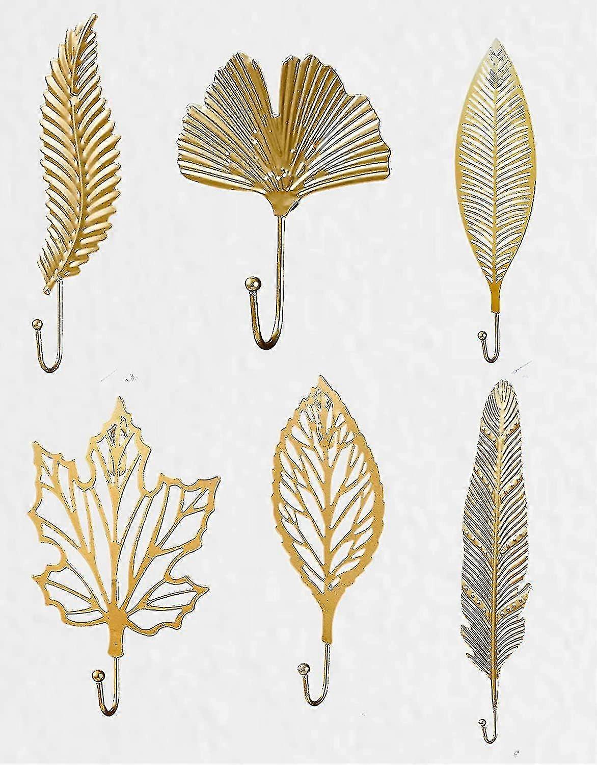 Golden Wall Hooks Decorative Set Of 6 In Luxury Leaf Dcor Style. Beautiful Decorative Hooks For Room Organization