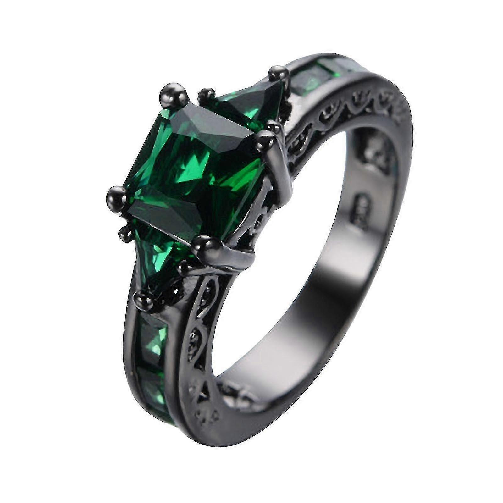 Gorgeous Black Copper Alloy Ring Inlaid With Square Zircons In Various Colors